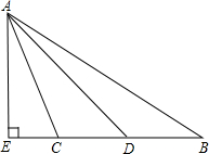 △ABC中,AB>AC,AD、AE分别是BC边上的中线和∠A的平分线,则AD和AE的大小关系是AD AE。(填“>”、“<”或“=”)