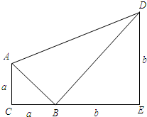 如图,已知等腰直角三角形ACB的边AC=BC=a,等腰直角三角形BED的边BE=DE=b,且a<b,点C、B、E放置在一条直线上,连接AD.