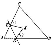 如图,在折纸活动中,小明制作了一张△ABC纸片,点D、E分别是边AB、AC上,将△ABC沿着DE折叠压平,A与