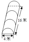 明明家打算在一块长为16米,宽为4米的矩形土地上搭建一个截面为半圆形的全封闭蔬菜棚,并全部盖上塑料薄膜(如图所示),则所需薄膜的面积至少为