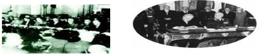 图一:《北大西洋公约》签字仪式 图二:《华沙条约》签字仪式