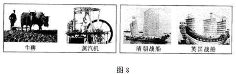 (2)观察图8两组中外对比图片你有哪些认识?结合所学,分析鸦片战争后中国传统经济结构发生了怎样的变化?