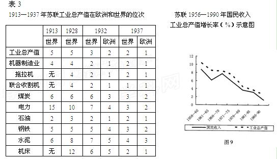(3)运用材料并结合所学,说说期大林模式对苏联经济的影响。(8分)