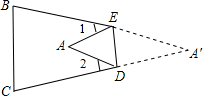 (1)如图(1),将△ABC纸片沿着DE对折,使点A落在四边形BCDE内点A′的位置,探索∠A,∠1,∠2之间的数量关系,并说明理由.
