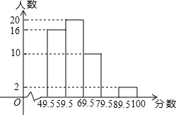 某校九年级有200名学生参加了全国初中数学联合竞赛的初赛,为了了解本次初赛的成绩情况,从中抽取了50名学生,将他们的初赛成绩(得分为整数,满分为100分)分成五组:第一组49.5~59.5;第二组59.5~69.5;第三组69.5~79.5;第四组79.5~89.5;第五组89.5~100.5.统计后得到右图所示的频数分布直方图(部分).观察图形的信息,回答下列问题:![]()