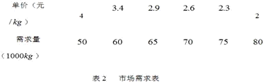 | 供给量 (1000kg) | 50 | 60 | 70 | 75 | 80 | 90 | 需求量 (1000kg) | 50 | 60 | 65 | 70 | 75 | 80 |