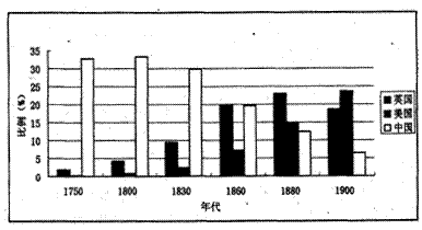 (2)根据材料二,说明1750—1900年间英、美、中三国在世界制造业产量中份额变化的趋势。
