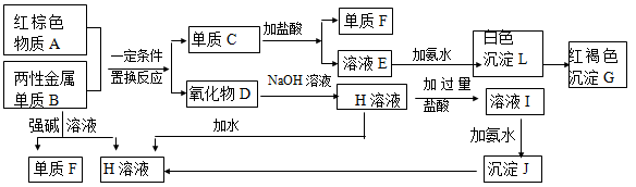 白色沉淀L会迅速变为 色,最终变为红褐色沉淀G,写出L变为G的化学反应方程式 。