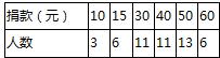 | 捐款(元) | 10 | 15 | 30 | 40 | 50 | 60 |