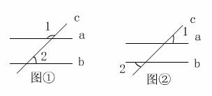 2、如图①,直线a、b被直线c所截(即直线c与直线a、b都相交),