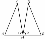 2.已知,M是AB的中点,MC=MD,∠1=∠2,若AC=8 cm,求BD的长度.