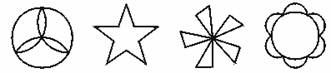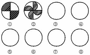 4.五一节前,市园林部门准备在文化广场特设直径均为4米的八个圆形花坛,在内放置面积相同的两种颜色的盆栽草花,要求各个花坛内两种草花的摆设不能相同,如图4中的①、②请你再至少设计出四种方案.