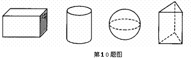 10.如图,四个几何体分别为长方体、圆柱体、球体和三棱柱,这四个几何体中有三个的某一种视图都是同一种几何图形,则另一个几何体是( )