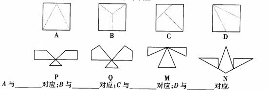 将标号为A、B、C、D的正方形沿图中的虚线剪开后得到的标号为P、Q、M、N的四组图形,试按照对应关系填空。