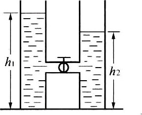 两个底面积都是S的圆桶,放在同一水平面上,桶内装水,水面高度分别为h1和h2,如图所示.已知水的密度为ρ,现把连接两桶阀门打开,最后两桶水面高度相等,则在这过程中重力做的功等于( ).【2.5】