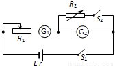 | D.反复调节R1和R2的阻值,使G1的示数仍为I1,使G2的指针偏转到满刻度的一半,此时R2的最终读数为r |
