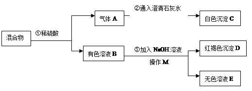 (1)操作M的名称为 ,红褐色沉淀D的化学式为 。