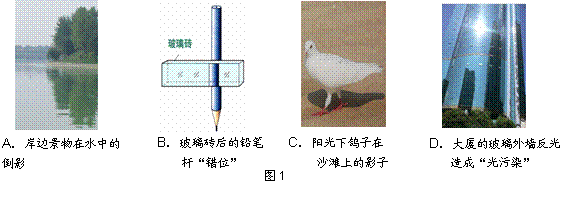 如图1所示的四种现象中,属于光的反射现象的是: ( )