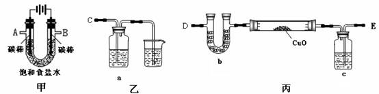 某化学小组拟采用如下装置(夹持和加热仪器已略去)来电解饱和食盐水,并用电解产生的H2还原CuO粉末来测定Cu的相对原子质量,同时检验氯气的氧化性。