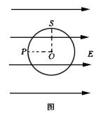 如图所示,在匀强电场中的O点放置点电荷Q,其电荷量为2.0×10-8 C,此时距O点10cm处的P点场强恰为零。求原匀强电场的场强的大小是多少?若以O点为圆心,以OP长为半径作一圆,在O点正上方圆周上S点的场强大小又是多少?方向如何?