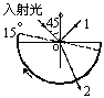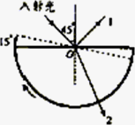 ,入射解为45°(相应的折射角为24°),现保持入射光不变,将半圆柱绕通过O点垂直于图面的轴线顺时针转过15°,如图中虚线所示,则