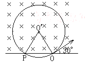 如图所示,一带电量为2.0×10=9C , 质量为1.8×10 –16Kg的粒子,在直线上一点O沿30o角方向进入磁感应强度为B的匀强磁场中,经历1.5×10- 6s后到达直线上另一点P.(重力不计)求:![]()