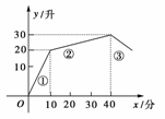 有一个装有进出水管的容器,每单位时间进出的水量是一定的,设从某时刻开始10分钟内只进水,不出水,在随后的30分钟内既进水又出水,得到时间x(分)与水量y(升)之间的关系如图所示.求y与x的函数关系.