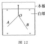 在“探究力的平行四边形定则”的实验中,首先用两个弹簧秤分别勾住绳套,在保证弹簧秤与木板平行的条件下,互成角度地拉长橡皮条,使结点到达O点,用铅笔记下0点位置及两细绳的方向,如图12中的OA、OB方向,读出两弹簧秤的示数F0A=2.7 N、F0B=3.3 N.