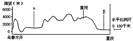 材料二:乌鲁木齐至重庆的地形剖面示意图