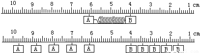 气垫导轨上有A、B两个滑块,开始时两个滑块静止,它们之间有一根被压缩的轻质弹簧,滑块间用绳子连接(如同甲所示).绳子烧断后,两个滑块向相反方向运动,图乙为它们运动过程的频闪照片,频闪的频率为10Hz.由图可知: