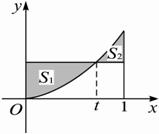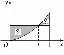 在区间[0,1]上给定曲线y=x2,试在此区间内确定点t的值,使图中阴影部分的面积S1与S2之和最小.