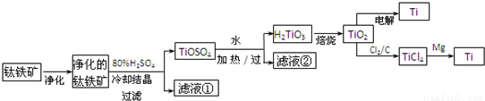 其中,步骤②发生的反应为:2H2SO4+FeTiO3=TiOSO4+FeSO4+2H2O。