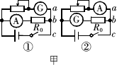 (1)某同学发现上述器材中虽然没有电压表,但给出了两个电流表,于是他设计了如下图(甲)中的①、②两个参考实验电路.其中合理的是图________所示的电路;在该电路中,为了操作方便且能准确地进行测量,滑动变阻器应选________(填写器材前的字母代号).