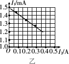 (2)下图(乙)为该同学根据(1)中选出的合理的实验电路利用测出的数据绘出的I1-I2图线(I1为电流表G的示数,I2为电流表A的示数),则由图线可得被测电池的电动势约为E=________V,内阻约为r=________Ω.