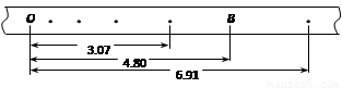 (2)在上述实验中,设质量m=1kg的重锤自由下落,在纸带上打出一系列的点,如下图所示,相邻计数点的时间间隔为0.02s,长度单位:cm,当地的重力加速度g=9.80m/s2.那么:从起点O到打下计数点B的过程中,重力势能的减小量为ΔEP= J,物体动能的增加量ΔE K= J。(均取两位有效数字)