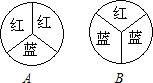 精英家教网下面是两个可以自由转动的转盘,每个转盘被分成了三个相等的扇形,小明和小亮用它们做配紫色(红色与蓝色能配成紫色)游戏,你认为配成紫色与配不成紫色的概率相同吗?