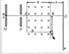 如图所示,电子自静止开始经从M、N板间的电场加速后从A点垂直于磁场边界射入宽度为d的匀强磁场中,两板间的电压为U,电子离开磁场时的位置P偏离入射方向的距离为L,在距离磁场边界S处有屏幕N,电子射出磁场后打在屏上。(已知d>L,电子的质量为m,电荷量为e)求: