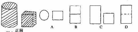 如图,小明从左侧观察一个圆柱体的邮筒和一个正方体箱子,看到的是 ( )