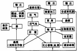 江苏某县地处水乡,畜禽养殖和栽桑养蚕是当地农业的两大支柱产业。在生产总量不断扩张的同时,该县坚持在发展中解决环境问题,优化生态环境,实现了资源的最大化利用。请分析该县农业生态系统结构(部分)示意图,回答问题。