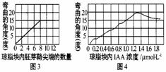 (已知)IAA的琼脂块代替放置过胚芽鞘尖端的琼脂块进一步实验,结果如图4所示。