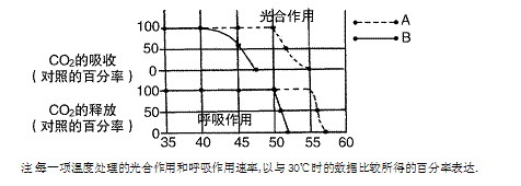 以不同的温度处理,然后测定其光合作用和呼吸作用的速率。对照实验则在30℃进行。研究结果如下图所示: