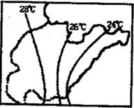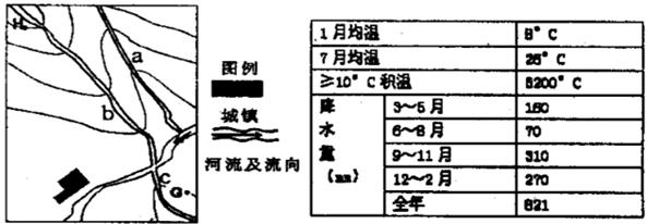 读某地区等高线示意图及气候资料表,图中等高线所示高度值有100米、200米、300米,400来。据此完成1-3题。