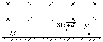 18.(12分)如图所示,光滑水平面上有一质量为M的足够长木板,板的右端放一质量为m、带正电荷量为q的绝缘滑块,滑块与板间的动摩擦因数为μ,在水平面上方有区域足够大的匀强磁场,磁感应强度大小为B、方向垂直纸面向里。开始时整个装置处于静止状态,现对木板施一水平向右的恒定拉力