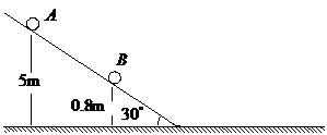 19.(12分)倾角为30°的足够长光滑斜面下端与一足够长光滑水平面相接,连接处用一光滑小圆弧过渡,斜面上距水平面高度分别为h1=5m和h2=0.2m的两点上,各固定一小球A和B。某时刻由静止开始释放A球,经过一段时间t后,同样由静止开始释放B球。g取10m/s2,则: