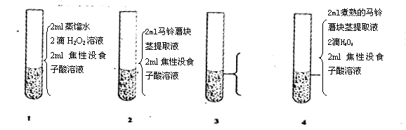 (2)过氧化物酶也能催化H2O2的分解,产生的[O]能使溶于水的无色焦性没食子酸氧化生成橙红色沉淀。为了鉴定马铃薯块茎是否含有过氧化物酶,设计了如下实验。