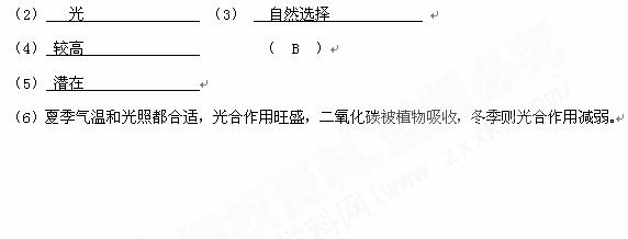 (6)科学家在研究过程中又发现大气中二氧化碳的浓度,在陆生植物繁茂的北半球中纬度地区冬季高于夏季,呈现明显的季节变化。这是因为 。