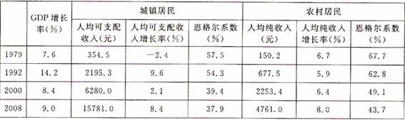 材料二:针对居民收入差距不断扩大的现象,多年来,我国政府采取了一系列措施:保持经济平稳较快发展,努力增加城乡居民收入;加大对“三农”和欠发达地区的支持力度,增强自我发展能力;加大对低收入群体的帮扶救助力度,努力提高保障水平,让人民共享改革发展成果。