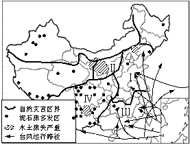 (4)地区Ⅳ中的 灾害严重,这里地质灾害严重的自然原因主要是 。