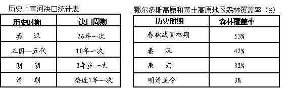 (1)历史上黄河的决口频率与森林覆盖率有何关系?