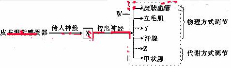 下图表示人体体温调节示意图,则下列关于图中X、Y、Z、W(W为虚线框部分)所示结构的说法正确的是